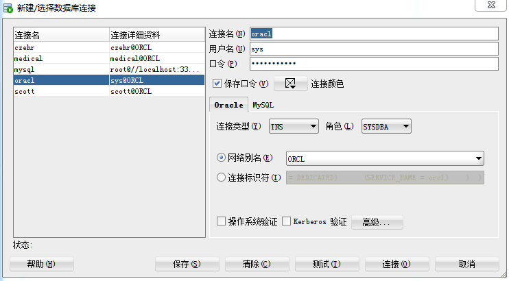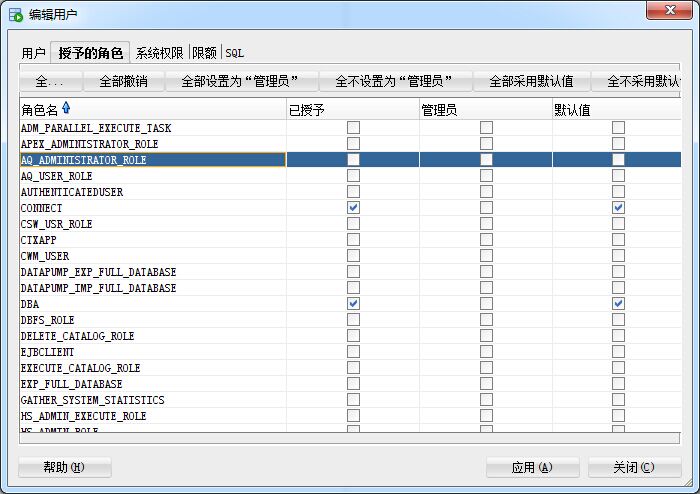 授權里面選中 connect,dba,resoure,三個權限,保存即可。