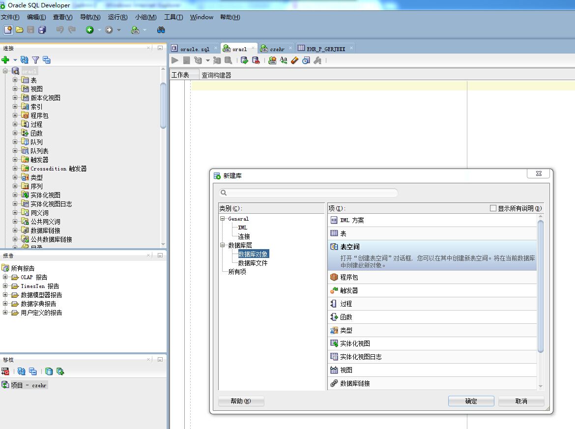 ORACLE SQL Developer 創建表空間及用戶操作